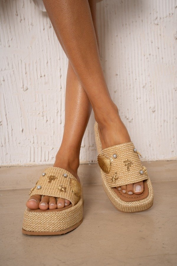 Rafia natural con apliques (pueden variar los apliques según el modelo)