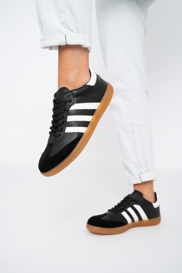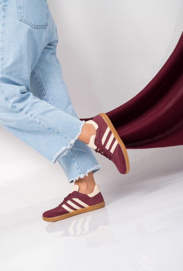 CUERO VEGANO Y GAMUZADO CON DETALLES EN GAMUZA Y BASE DE GOMA TR ANTIDEZLIZANTE AMPLIA GAMA DE COLORES DISPONIBLES. HORMA REAL